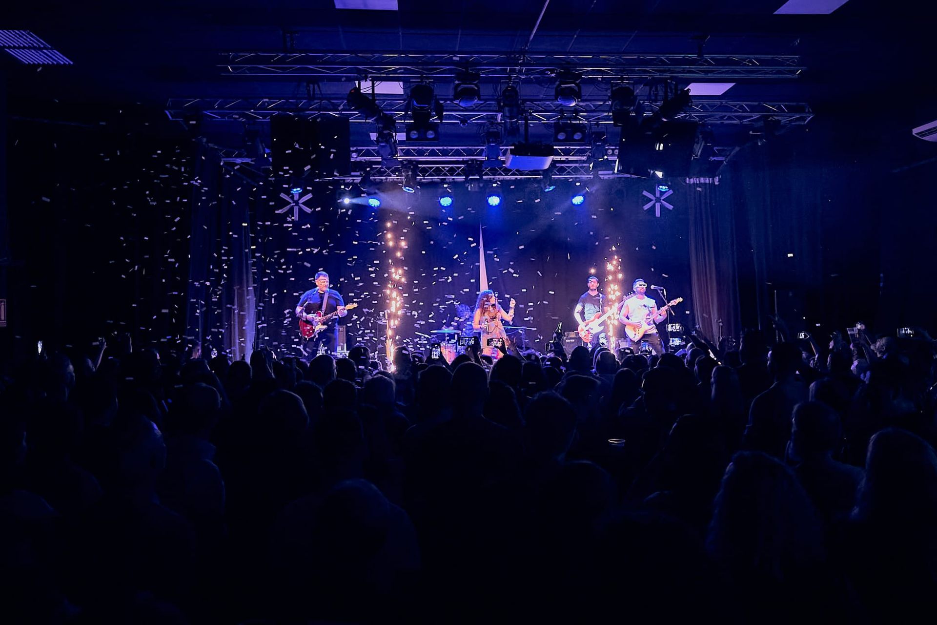 Nos encanta interaccionar con el público, por lo que los conciertos son muy dinámicos y divertidos, sacando incluso a la gente a cantar con nosotros.